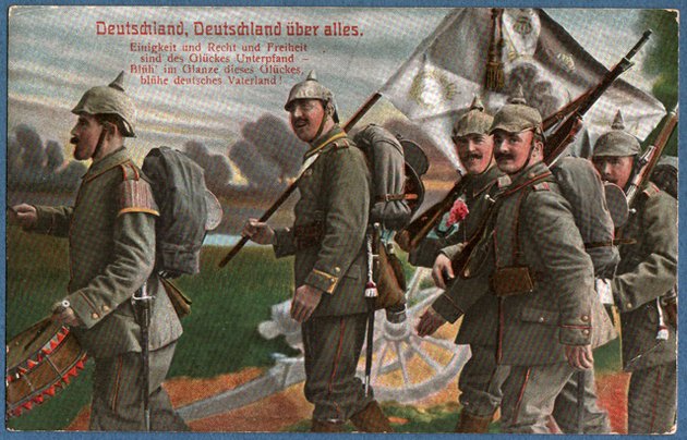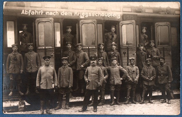 Die anfänglich allgemeine Vorstellung eines „kurzen Kriegsgeschehens“ zeigen zahlreiche Ansichtskarten aus dieser Zeit mit fröhlichen Kriegsteilnehmern auf dem Weg zur Front.
