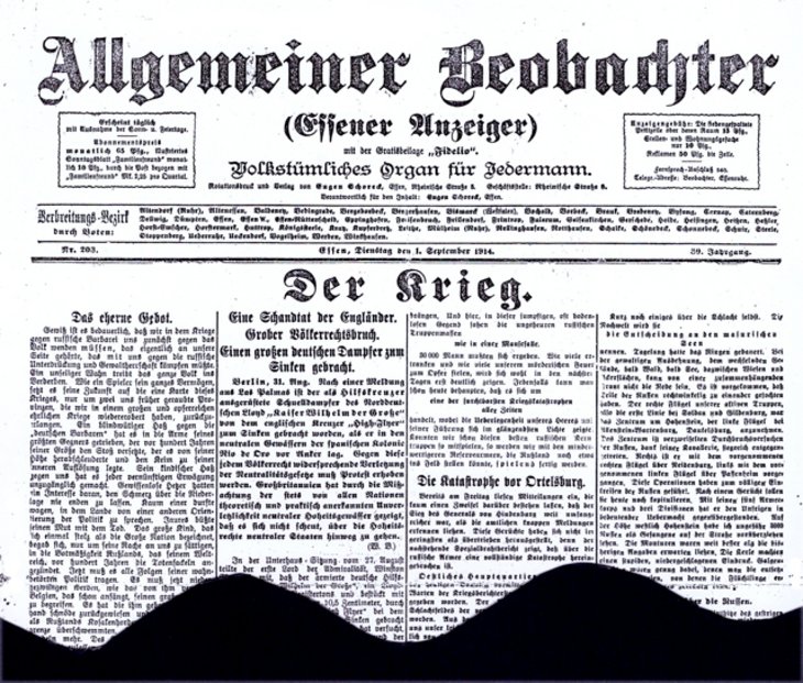 Dazu eine Zeitungsausgabe vom 1. September 1914