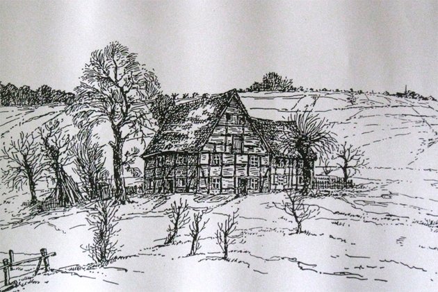Für Heimatinteressierte 2 wichtige Hinweise. Zum einen gehörte Linscheid dem Haus Opherdicke und daher wird Hengsen aus diesem Grund in der Todesanzeige oben nicht erwähnt. Ferner basierte das einsame Forsthaus auf einem alten und niederen Adelssitz, der an das Haus von Lilien gekommen war. Dazu eine Zeichnung zu Linscheid (Quelle Fr. Busemann)
