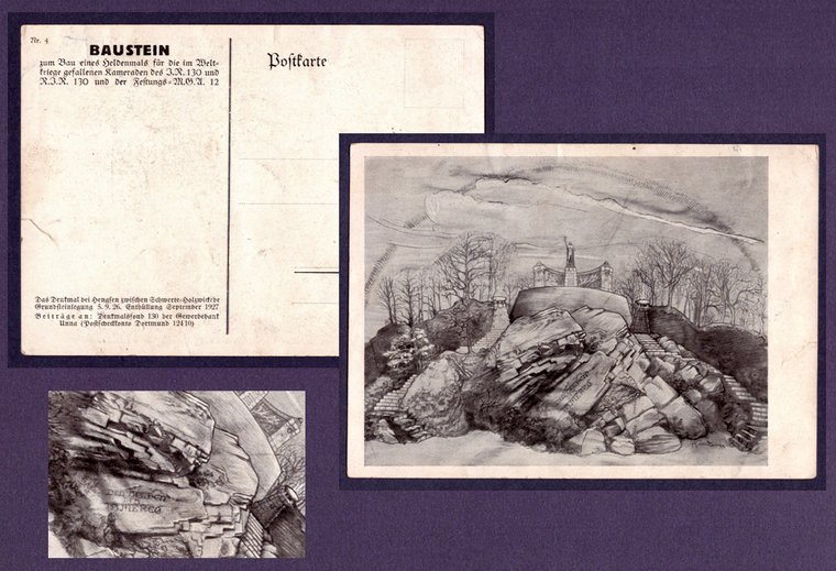 Das Denkmal bei Hengsen zwischen Schwerte=Holzwickede. Grundsteinlegung 5.9.1926. Enthüllung September 1927 (war wohl ein geplanter Termin, der nicht eingehalten werden konnte).