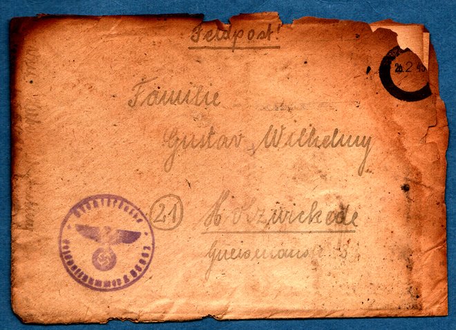 Dazu oben ein Brief des Soldaten Herbert Wilhelmy an seine Eltern in Holzwickede, Gneisenau-Str. 39 (heute Sachsenstraße) gesichert aus dem zerstörten Postgebäude und noch ordnungsgemäß zugestellt. Persönliche Information und Bild von Herbert Wilhelmy, der selbst später in der Lessingstraße wohnhaft und Ortshistoriker mit etlichen hervorragenden Ausarbeitungen zu seinem Heimatort Holzwickede war.