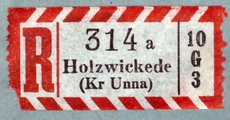Dem Gau Westfalen Süd und Nord war die Zahl 21 zugewiesen. Dies wurde auch nach Kapitulation unverändert für Westfalen beibehalten aber noch mit der Ergänzung a und b (Nord-Süd). Die „sparsame“ Poststelle Holzwickede sah keine Notwendigkeit in ihren Poststempeln die PLZ 21b zu etablieren und behielt ihre alte Poststempelausführung bis ca. zum Jahr 1965 bei ! Dies ist doch erstaunlich, da bereits im Jahr 1961 die neuen Postleitzahlen eigentlich eingeführt worden waren mit ihrer 4stelligen Ausführung für Holzwickede mit 4757 und den Landpoststellen Opherdicke, Hengsen und Hengserheide mit 5841 und hier bis zum Jahr 1968. Erst mit Bildung der Großgemeinde Holzwickede im Jahr 1968 aus Holzwickede, Opherdicke und Hengsen wurde für Holzwickede und Hengsen die Postleitzahl 4755 verbindlich und die Landpoststellen Opherdicke und Hengserheide wurden aufgelöst.