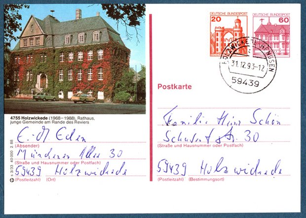 Nachfolgend sozusagen ein Letzttagsbeleg der Poststelle Hengsen am 31.12. 1993