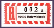 Der Posttagesstempel mit der Zeitangabe 12 Uhr ist bezüglich der geforderten Einschreibversion interessant. Die Nebenpoststelle Hengsen hatte keine entsprechend geänderte Einschreibzettelrolle erhalten und die Einschreibversion wurde nachträglich in der Hauptpoststelle Postamt Holzwickede „nachbearbeitet“.