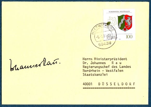 Die Wappenausgabe Nordrhein-Westfalen eignete sich natürlich auch dafür aus Holzwickede den damaligen Ministerpräsidenten Johannes Rau um ein vorderseitiges Autogramm zu bitten
