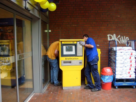 gegen 12 Uhr war der Briefmarkenautomat wieder im Einsatz