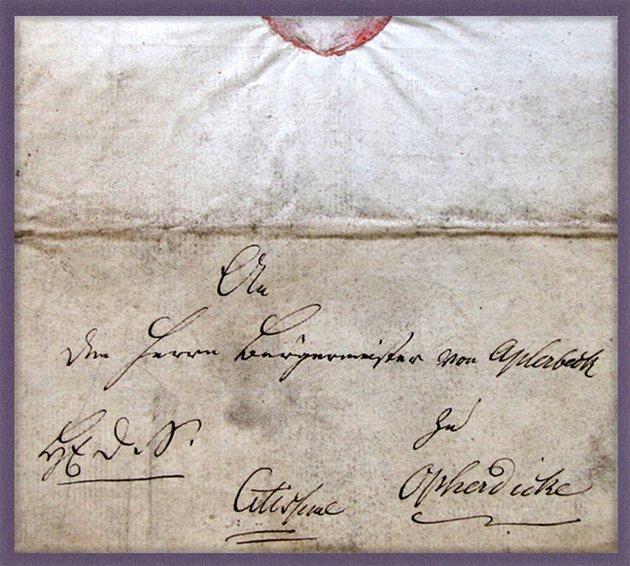 Der Briefinhalt datiert aus dem Jahr 1812 und geht als Eilbrief der schnellsten Anforderung (citissime!) an den Bürgermeister von Aplerbeck mit Sitz zu Opherdicke! Quelle: Brief aus dem ADELSARCHIV des Landschaftsverbandes Westfalen-Lippe (LWL) in Münster. Es liegt in diesem Fall eine digitalisierte Form aus dem Kreisarchiv Unna vor und belegt oben eine besondere Historie.
