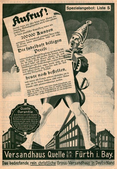 Apropos Hitlerbild. Nicht nur amtliche Stuben waren entsprechend dekoriert, auch das rein christliche Versandhaus Quelle hatte ein Hitlerbildnis mit Goldleiste preiswert anzubieten für den NS – bewussten Haushalt und bei 200.000 Kunden sicherlich kein Ladenhüter