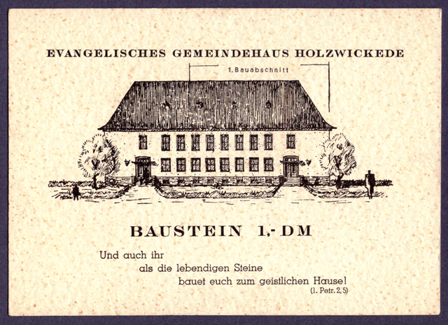 Erst tragischerweise der beginnende Krieg 1939 führte unter den betroffenen unterschiedlichen Lagern zu Beruhigung im Kirchenkampf. Pastor Schäfer eingezogen zum Kriegsdienst verließ nach Kriegsende (Abberufung durch kirchlichen Spruchkammerbeschluss 1947) dann die Gemeinde Holzwickede und ein friedlicher Neuanfang gelang mit dem berufenen Hilfsprediger Kandzi (später Superintendant). Die evangelischen Gläubigen fanden wieder zusammen und ein neues Gemeindehaus konnte neben dem Pfarrhaus geplant und 1950 errichtet werden.