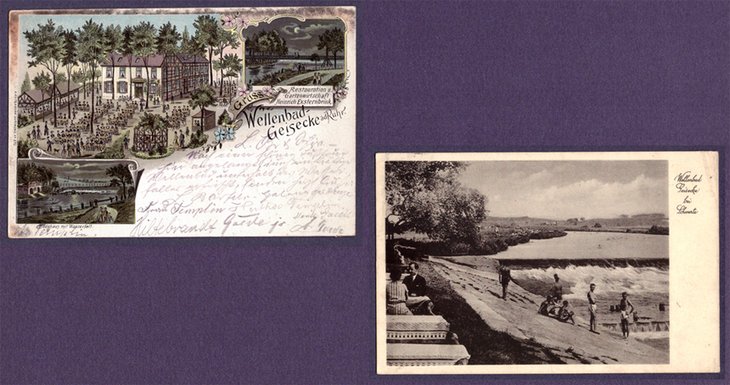 Lithografie links Poststempel 1903 und rechts Fotoansichtskarte Poststempel 1935