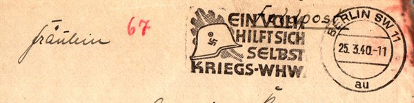 1940 war auch im Maschinenstempel EIN VOLK HILFT SICH SELBST der