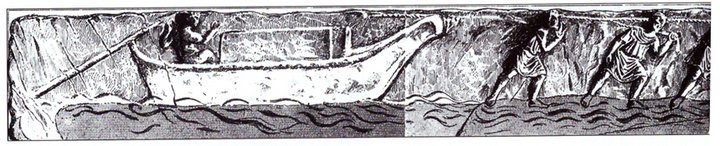 Römerlager und Siedlungen finden sich übrigens stets an Flussläufen, um auch schwergewichtige Transporte mit militärischem Nachschub, Getreide, Tonkrügen und auch Fässern zu gewährleisten. Dazu ein römisches Relief aus dem Buch Die Nutzung des Wasserweges zur Versorgung der römischen Militärlager an der Lippe mit einem Flusstransport durch Treideln mittels Menschenkraft am Uferweg.