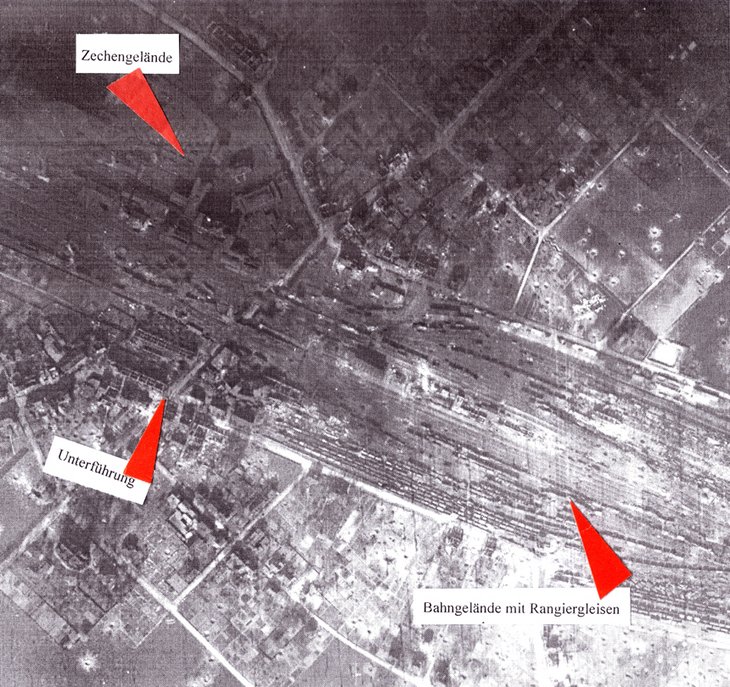 Es standen ca. 1500 Waggons beladen mit durchaus interessanten Gütern (z.B. Medikamente, Verbandsmaterial) für die Bevölkerung aber natürlich auch für den militärischen Kriegswahnsinn „unbeweglich“ im Bahnhofsbereich massiert herum.