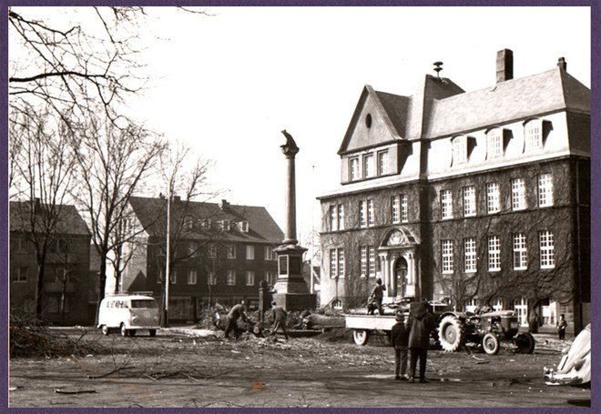Damit waren die Tage des Denkmals auf dem Marktplatz am 30. April 1962 nach 50 Jahren abgelaufen und folgend Szenen vom Denkmalabbruch vor dem Rathaus in Holzwickede