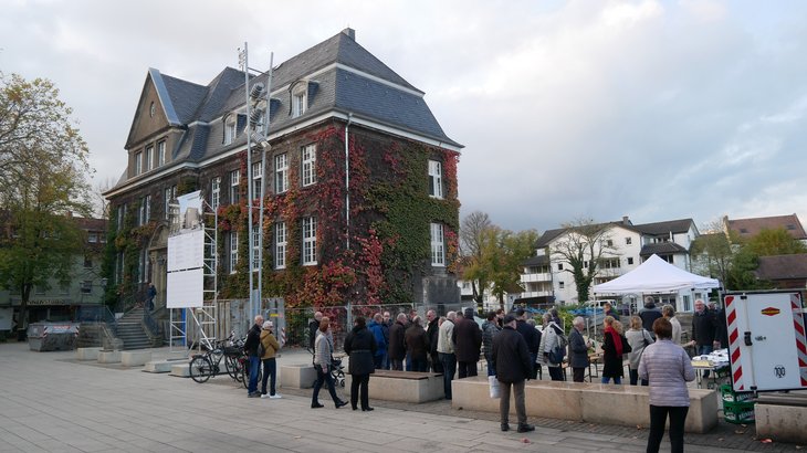 Teile der Verwaltung u.a. Service und Standesamt wurden notwendigerweise in ein Bürogebäude im ECO PORT umquartiert und im Dezember 2018 stimmte der Umweltausschuss den leider notwendigen Baumfällungen zu und der Spatenstich Rathausanbaukomplex war dann im Jahr 2019 am 29. Oktober und dazu freundlicherweise ein weiteres Bild von Detlef Drossel.