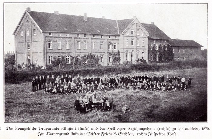 Friedrich Stehfen war auch in diesem Fall mit einer beachtlichen Summe bereit das Bauwerk westlich angegliedert an das Waisenhaus zu errichten und in einer zweiten Stiftung zu etablieren. Um Stehfen in dieser Gründungsphase zu unterstützen, lehnt Bodelschwingh sogar namhafte Berufungen u.a. Übernahme der Goßner`schen Misssion in Berlin ab. Tragisch ist an dieser Stelle der Tod seiner 4 Kinder 1869 in Dellwig innerhalb von 12 Tagen durch Keuchhusten (bakteriell) zu notieren. An dieser Stelle dann auch der Hinweis zum 4. Hausvater des Erziehungshauses Heinrich Mandel (1880-1884). Das Ehepaar Mandel hatte ein zurückgelassenes (!) krankes Zigeunerkind aufgenommen, das die Pockenerkrankung mit ins Heim brachte. Die Heimkinder des Holzwickeder Erziehungshauses überstanden die höchst gefährliche Viruserkrankung (Typ Variola vera bis 80% letaler Verlauf, Covid 19 dagegen „relativ harmlos“) nicht aber tragischerweise das eigene Söhnchen des Ehepaars Mandel. Gegen beide genannte Erkrankungen wurden übrigens hervorragende langjährig entwickelte und erprobte Impfstoffe mit hoher Immunkompetenz entwickelt und eingesetzt (im Gegensatz zum überstürzt entwickeltem Corona-Impfstoff auf neuartiger genetischer Basis mit fraglicher Wirksamkeit und evtl. möglichen Nebenwirkungen im politisch gewollten Großversuch und dies praktisch nur in den Industrienationen ohne Schweden und Schweiz unter Mainstreamdruck der Presselandschaft). Die Pockenerkrankung wurde sogar durch Impfprogramme der WHO weltweit eliminiert, so dass in diesem Fall keine Impfung mehr erforderlich ist (hoffentlich kommt es aus dem auftauendem Permafrost nicht noch zu Überraschungen aus verstorbenen „kranken Moorleichen“).