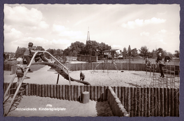 und auch der Spielplatz wurde vergrößert und nach Süden an die Kirchstraße verlegt und zeigt sich folgend dort in seiner ersten Gestaltung.