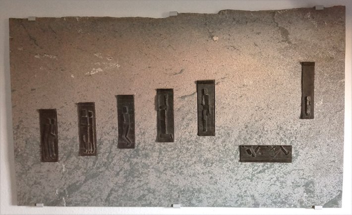 Folgend die Bronzeoriginalarbeiten aus dem Jahr 1962/63 des Bildhauers Josef Baron (1920 – 2020) eingearbeitet in Anröchter Dolomit durch Bildhauer Hennik Gausling - nach denen die Denkmalrepliken (Holzwickede – Munster, Clara Schumann Gymnasium) im Großformat als Mahnmal durch Kunstwerkstätten in Bronze und Stein gefertigt wurden