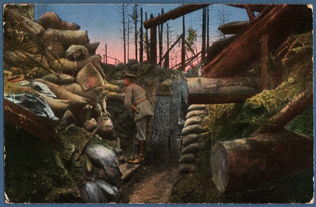 Die Wirklichkeit wurde und war eine zerpflügte Landschaft durch Granaten mit zerschossenen Gräben, Bäumen und verletzt wimmernden oder toten Soldaten.